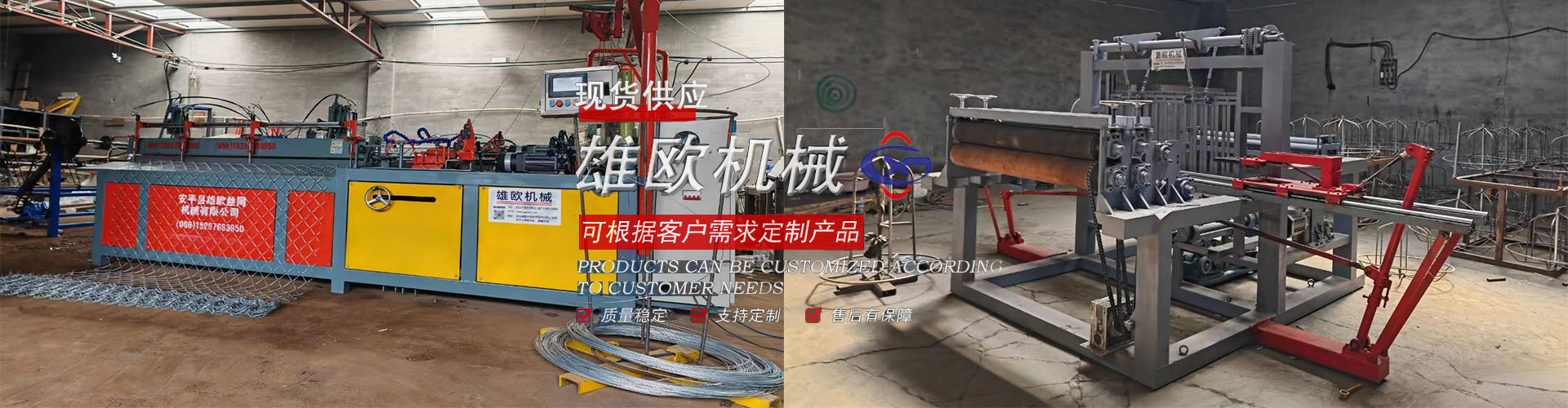 安平县雄欧丝网机械有限公司位于著名的“丝网之乡”---河北省安平县,专业从事设计、研制各种新型丝网机械设备和生产各种丝网。雄欧网业机械研发丝网机械已有20余年,凭借专业的制作水准与完善的售后服务,深受广大客户的赞同和信赖。雄欧网业机械主要产品有:数控半自动勾花机械、数控全自动勾花机械、数控保温网机械、数控食品网机械、全自动经纬网机械、直丝机机械、数控全自动网片焊接机械、汽车坐垫网机械等机械类产品,同时还有金属网带、装饰网、涂塑丝、勾花网、支护网片、金属线材、煤矿支护网、体育场用网、边坡防护网等丝网产品。产品用途广泛、规格齐全。以优良的质量和贴心的服务赢得了广大客户的好评 ...